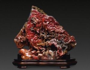 鸡血石(bloodstone)是中国特有的玉石品种鸡血石因含有深红色艳丽的朱砂矿物而得名,犹如鸡血凝固。它与青田石、寿山石并列为“印石三宝”。